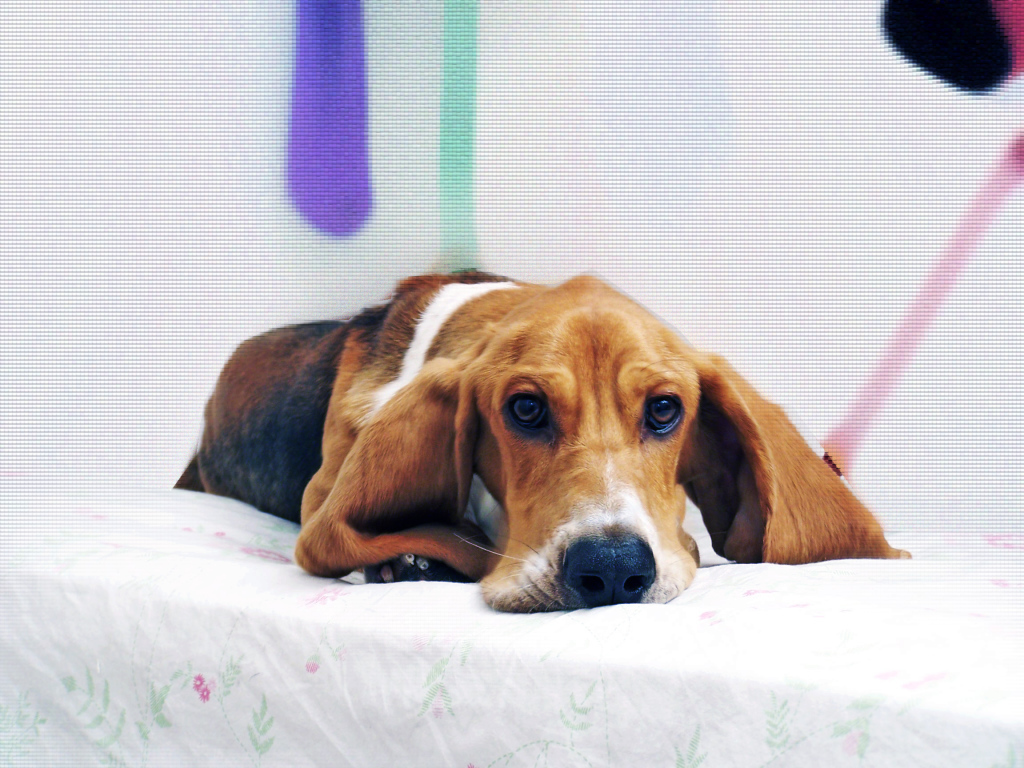Красивый бассет-хаунд на кровати Обои для рабочего стола 1024x768