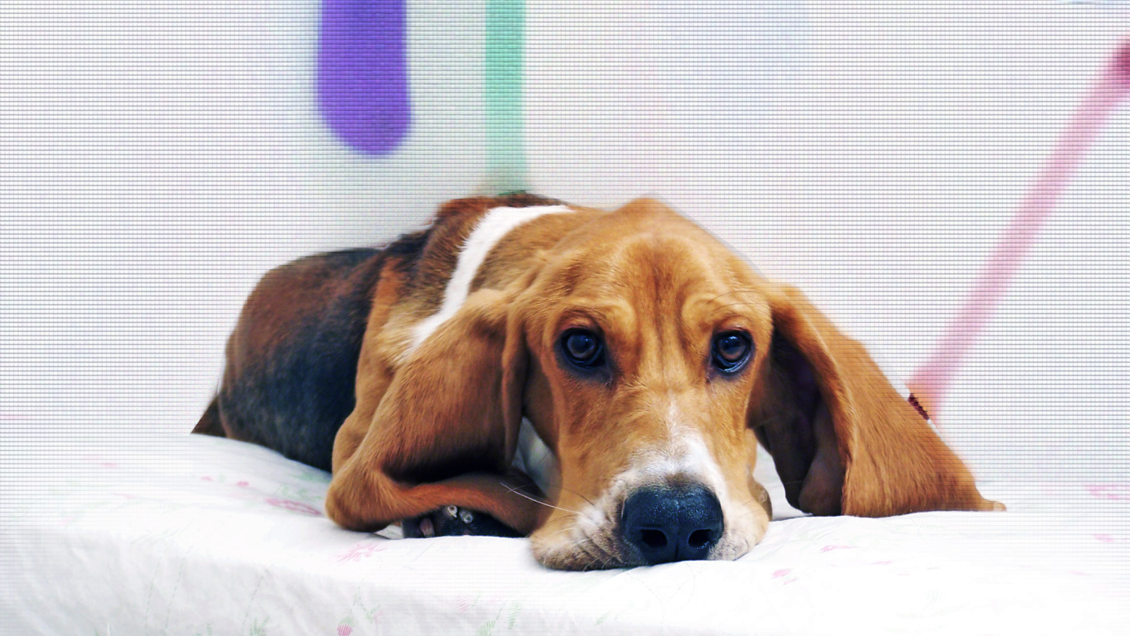 Красивый бассет-хаунд на кровати Обои для рабочего стола 1600x900