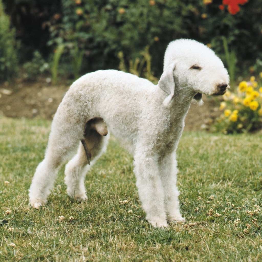 Бедлингтон-терьер позирует на природе Обои для рабочего стола 1024x1024