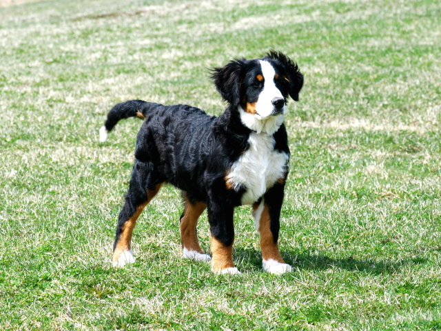 Щенок бернской пастушьей собаки на траве - 3872x2592