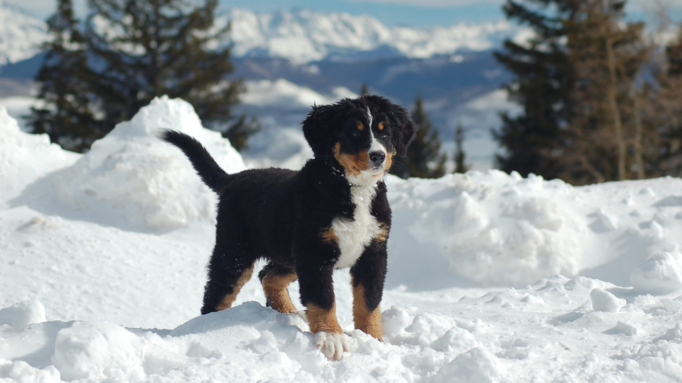 Щенок бернской пастушьей собаки на снегу - 3008x2000