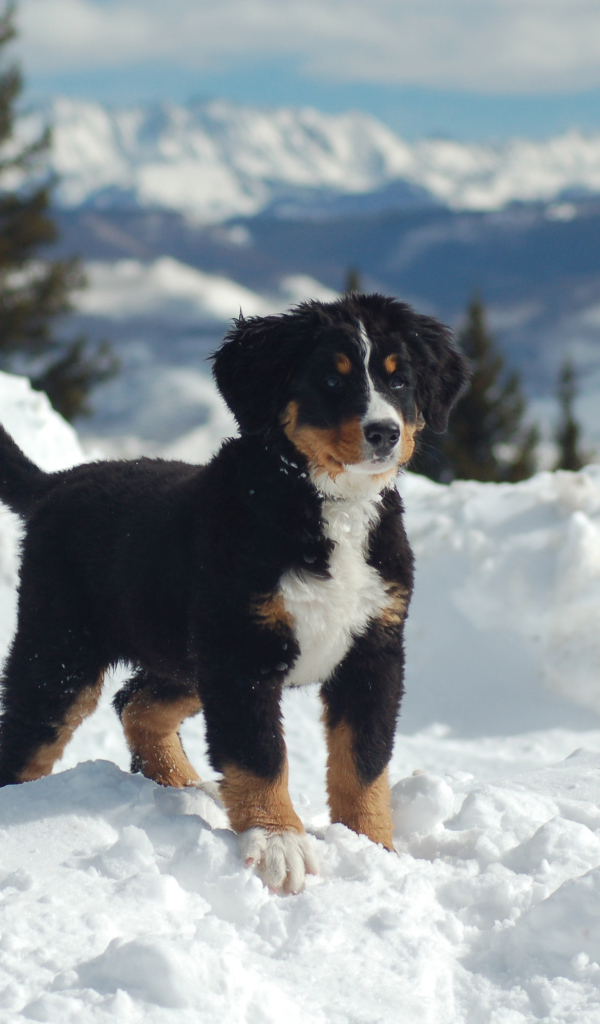 Щенок бернской пастушьей собаки на снегу Обои для рабочего стола 600x1024