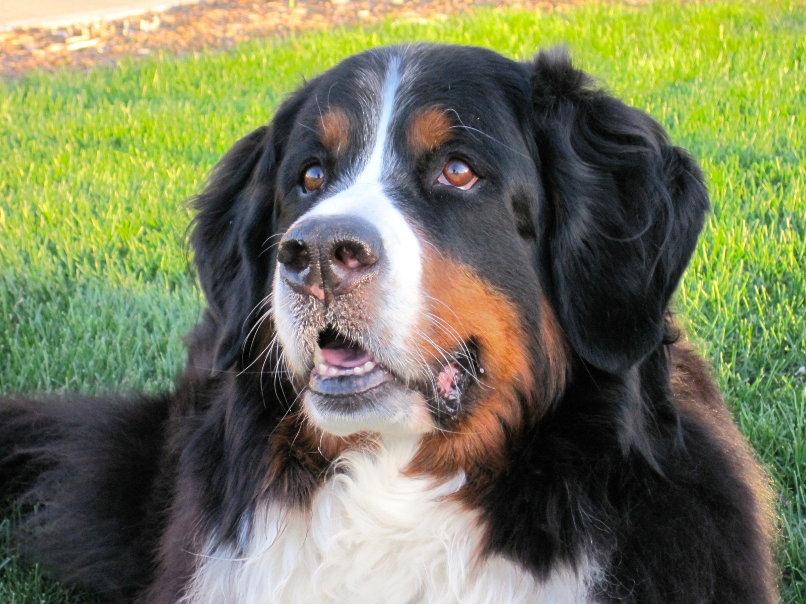 Бернская пастушья собака отдыхает на траве - 2816x2112