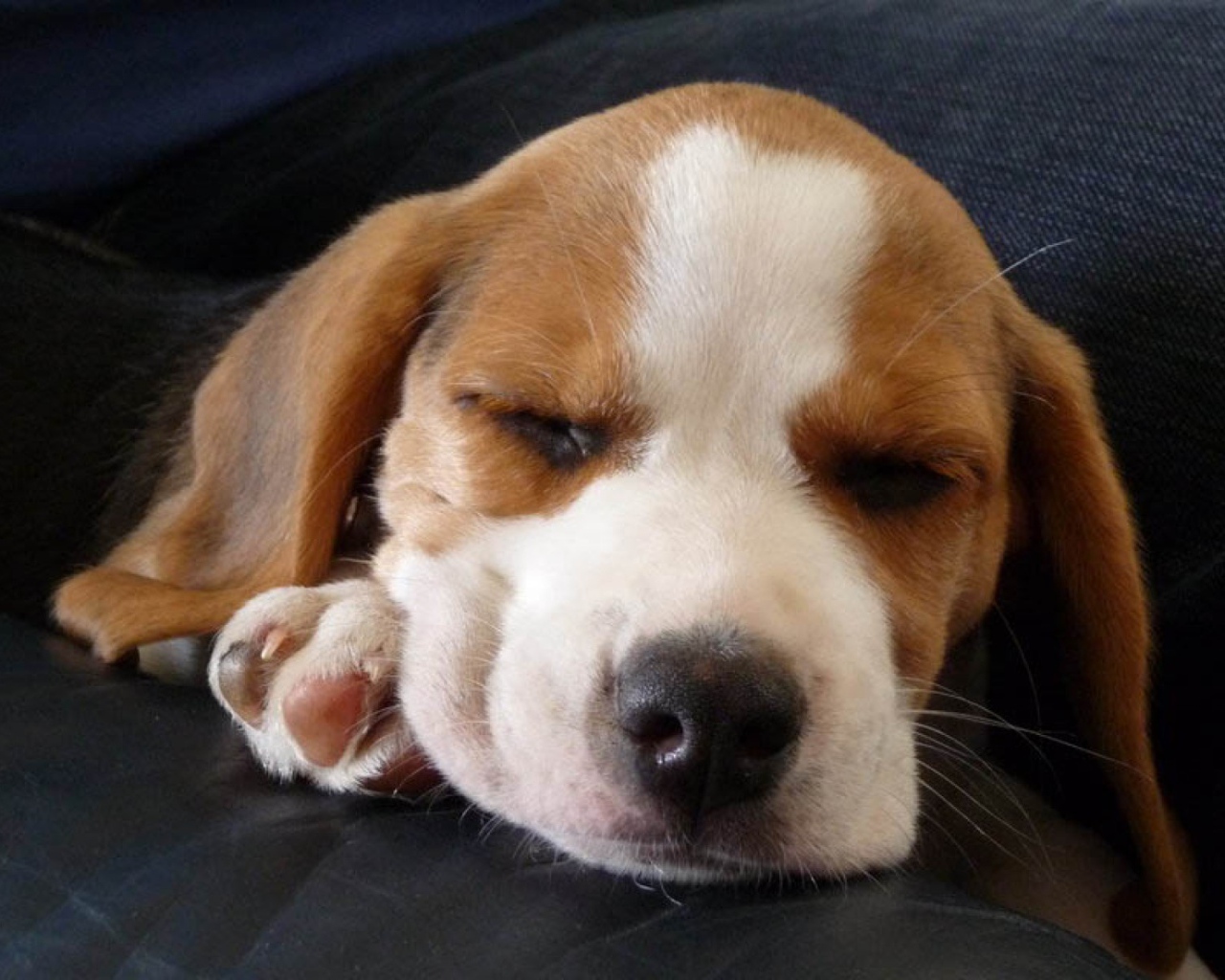 Собака породы бигль смотрит десятый сон на кресле - 1920x1200