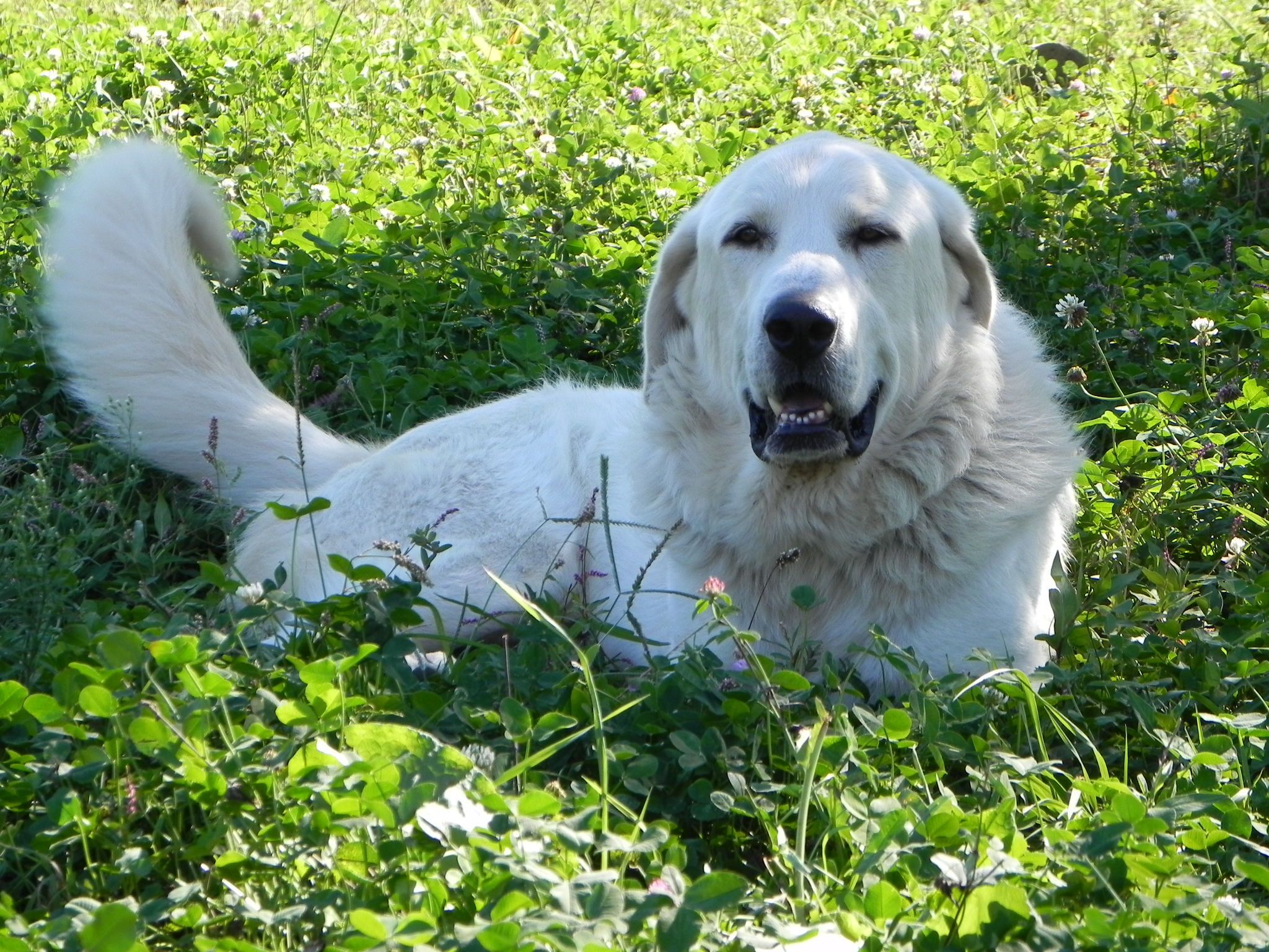 Большая пиренейская собака отдыхает на траве - 2048x1536
