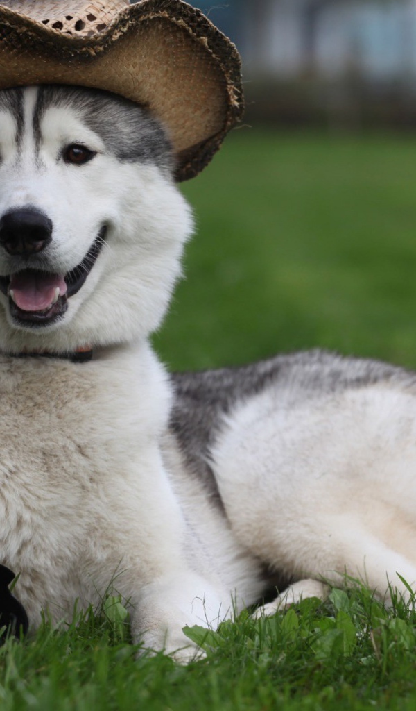 Собака с сумкой и в шляпе Обои для рабочего стола 600x1024