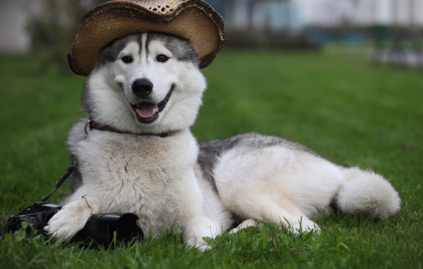 Собака с сумкой и в шляпе Обои для рабочего стола 600x382