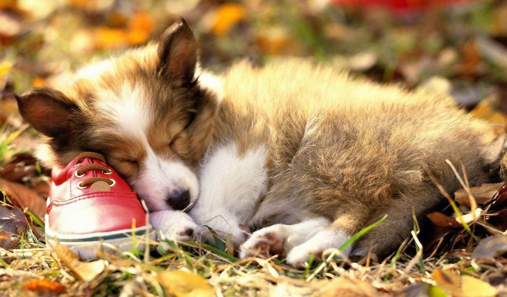 Щенок спит на ботинке Обои для рабочего стола 1024x600