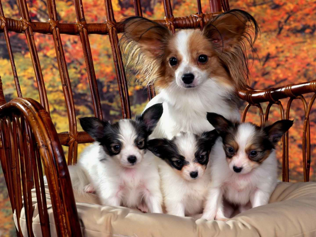 Французский Папильон с щенками Обои для рабочего стола 1024x768