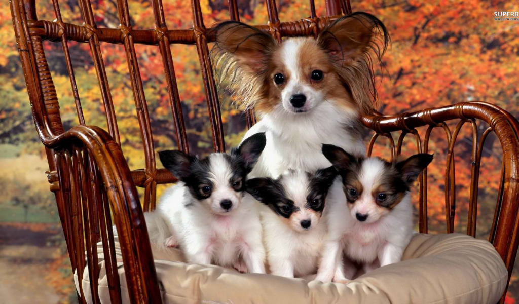 Французский Папильон с щенками Обои для рабочего стола 1024x600