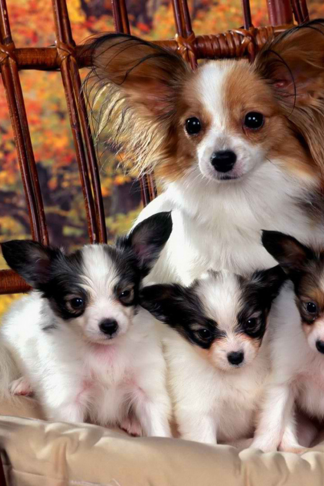 Французский Папильон с щенками Обои для рабочего стола 640x960