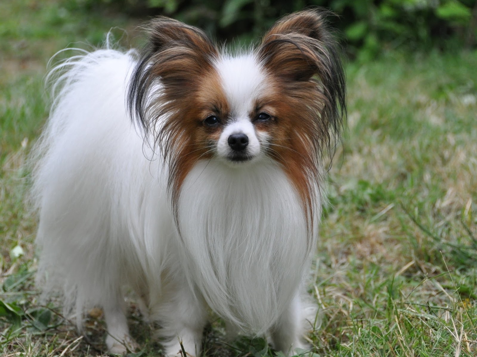 Пушистый папильон на траве - 1600x1324