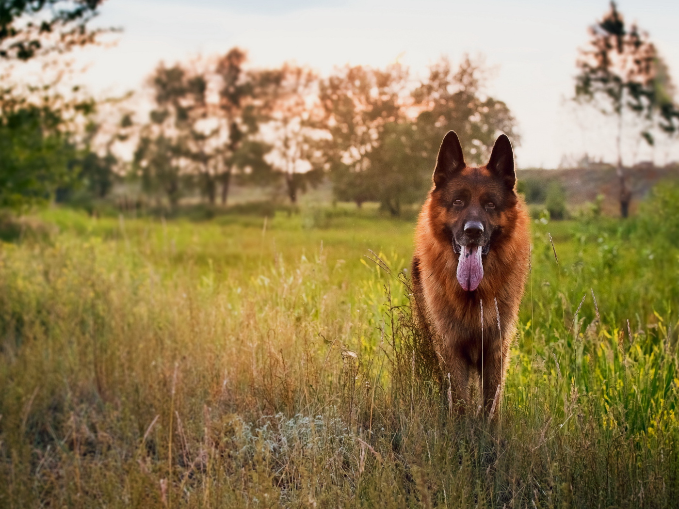 Немецкая овчарка на закате Обои для рабочего стола 1400x1050