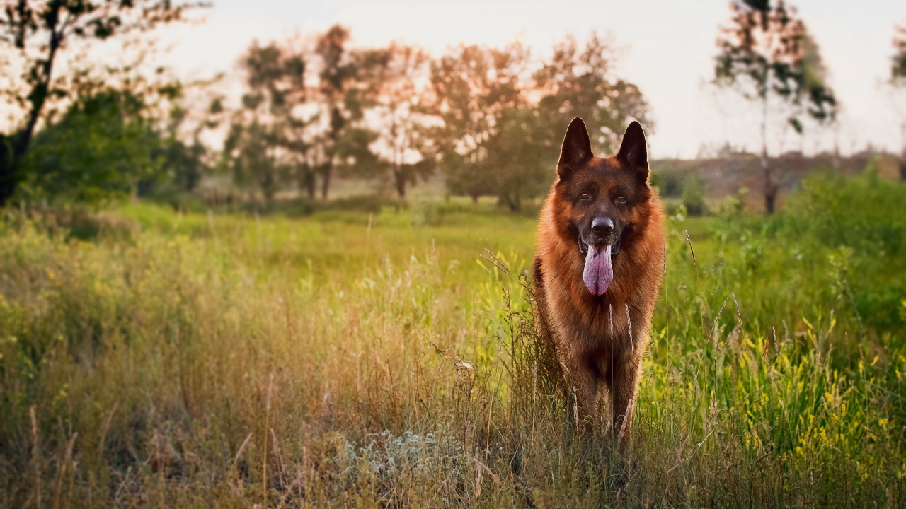 Немецкая овчарка на закате Обои для рабочего стола 1280x720