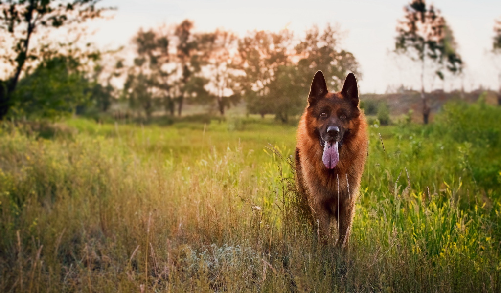 Немецкая овчарка на закате Обои для рабочего стола 1024x600