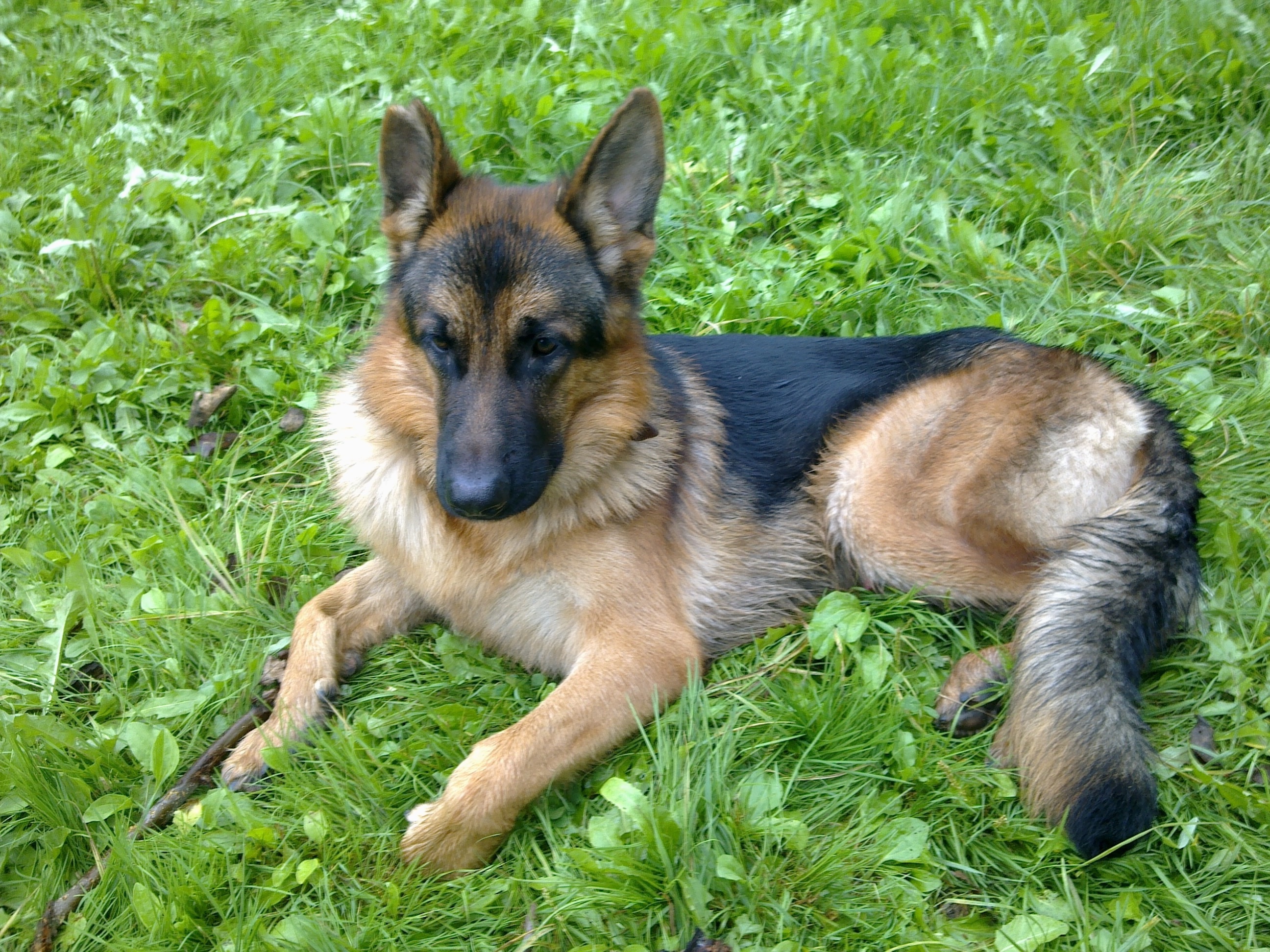 Немецкая овчарка отдыхает на траве - 2592x1944