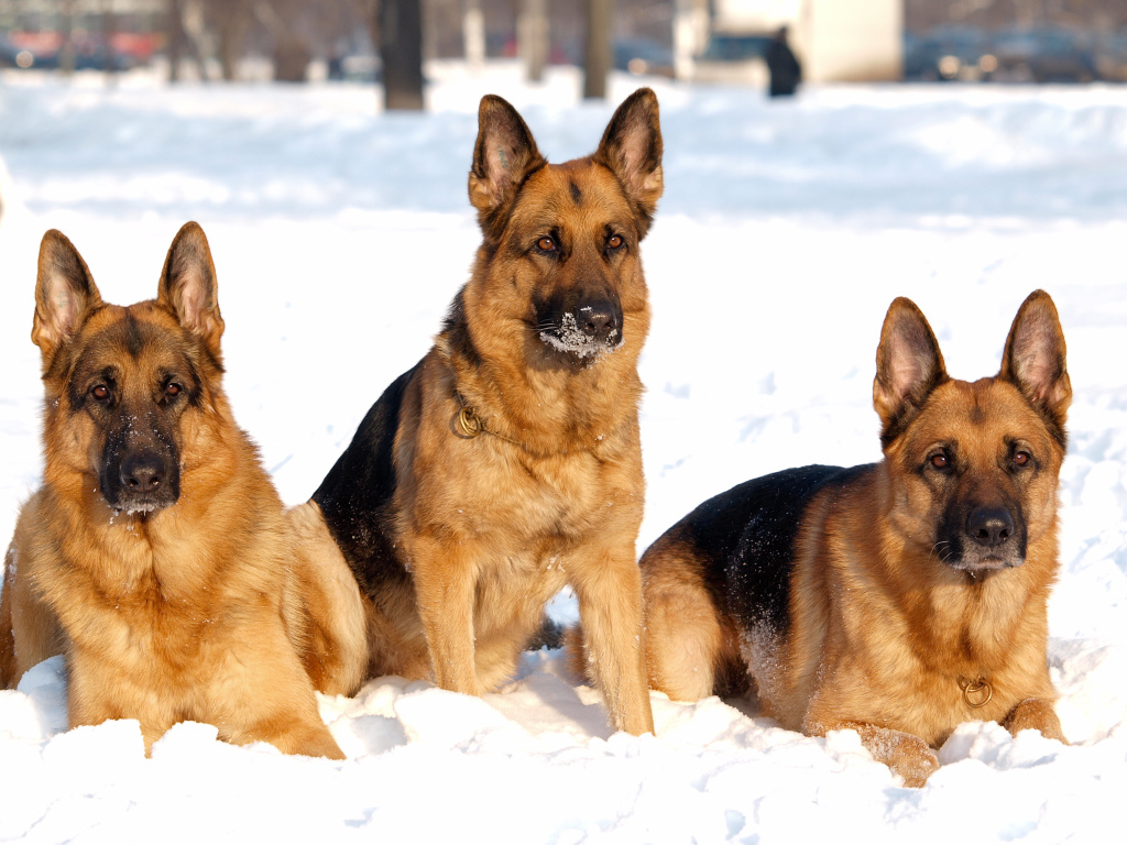 Три дружных немецких овчарки Обои для рабочего стола 1024x768
