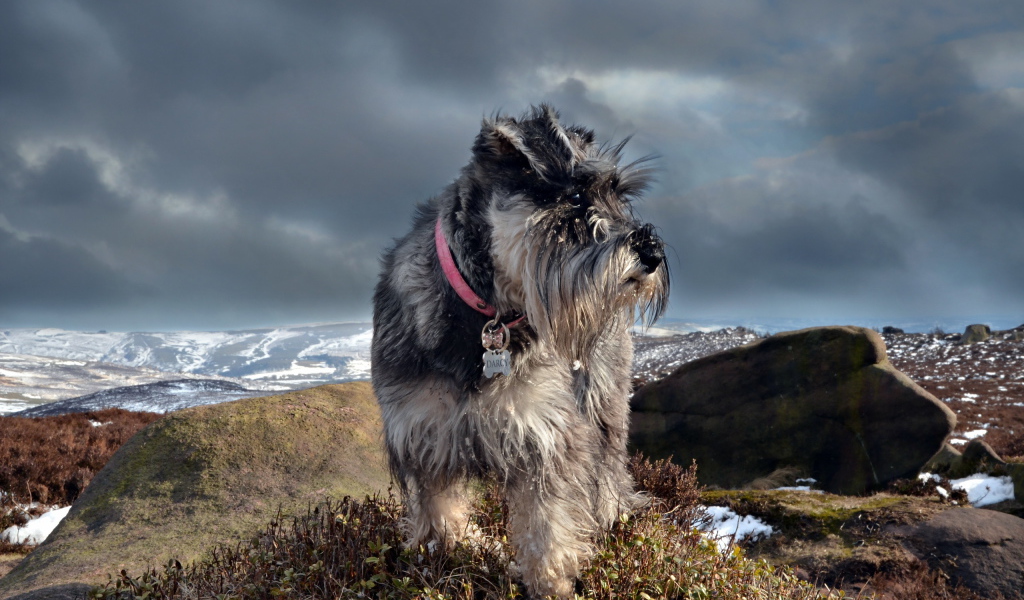 Лохматый шнауцер в горах Обои для рабочего стола 1024x600
