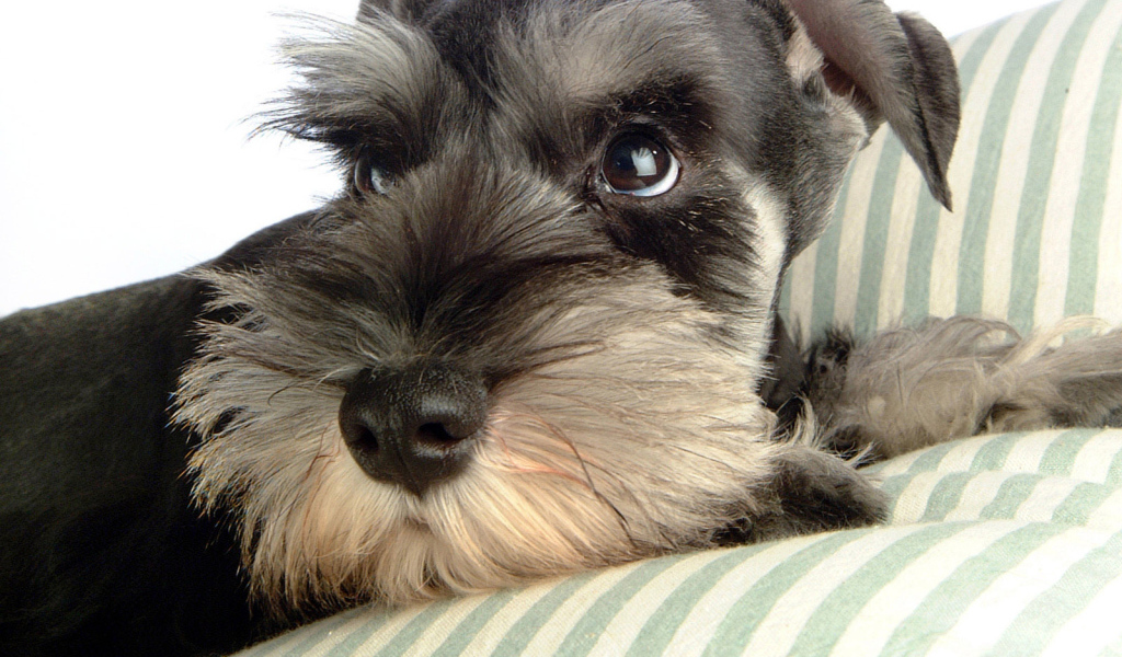 Шнауцер лежит на перине Обои для рабочего стола 1024x600