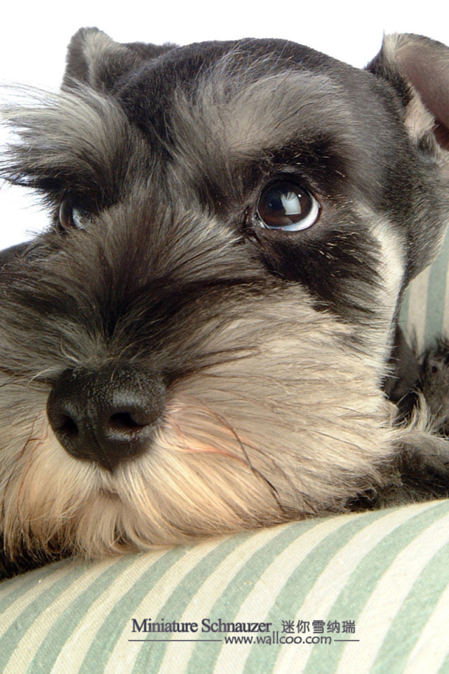 Шнауцер лежит на перине Обои для рабочего стола 640x960