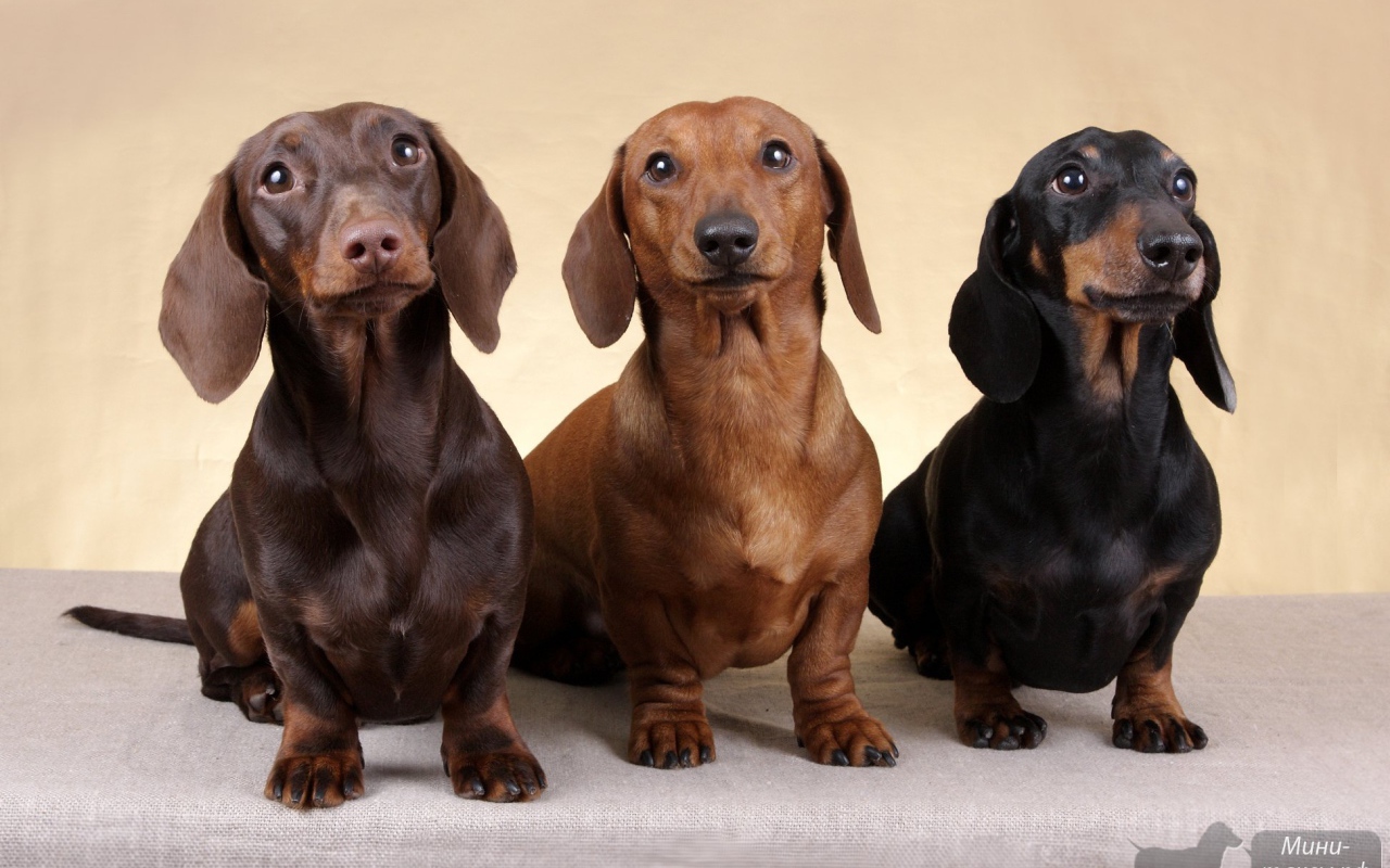 Три таксы смотрят вверх Обои для рабочего стола 1280x800
