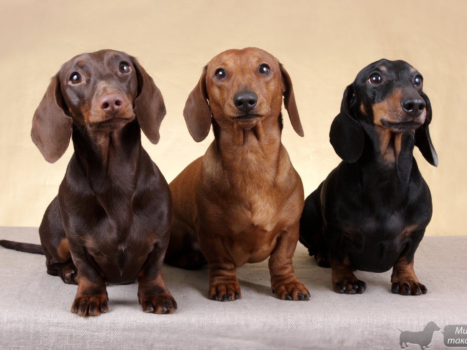 Три таксы смотрят вверх Обои для рабочего стола 1600x1200