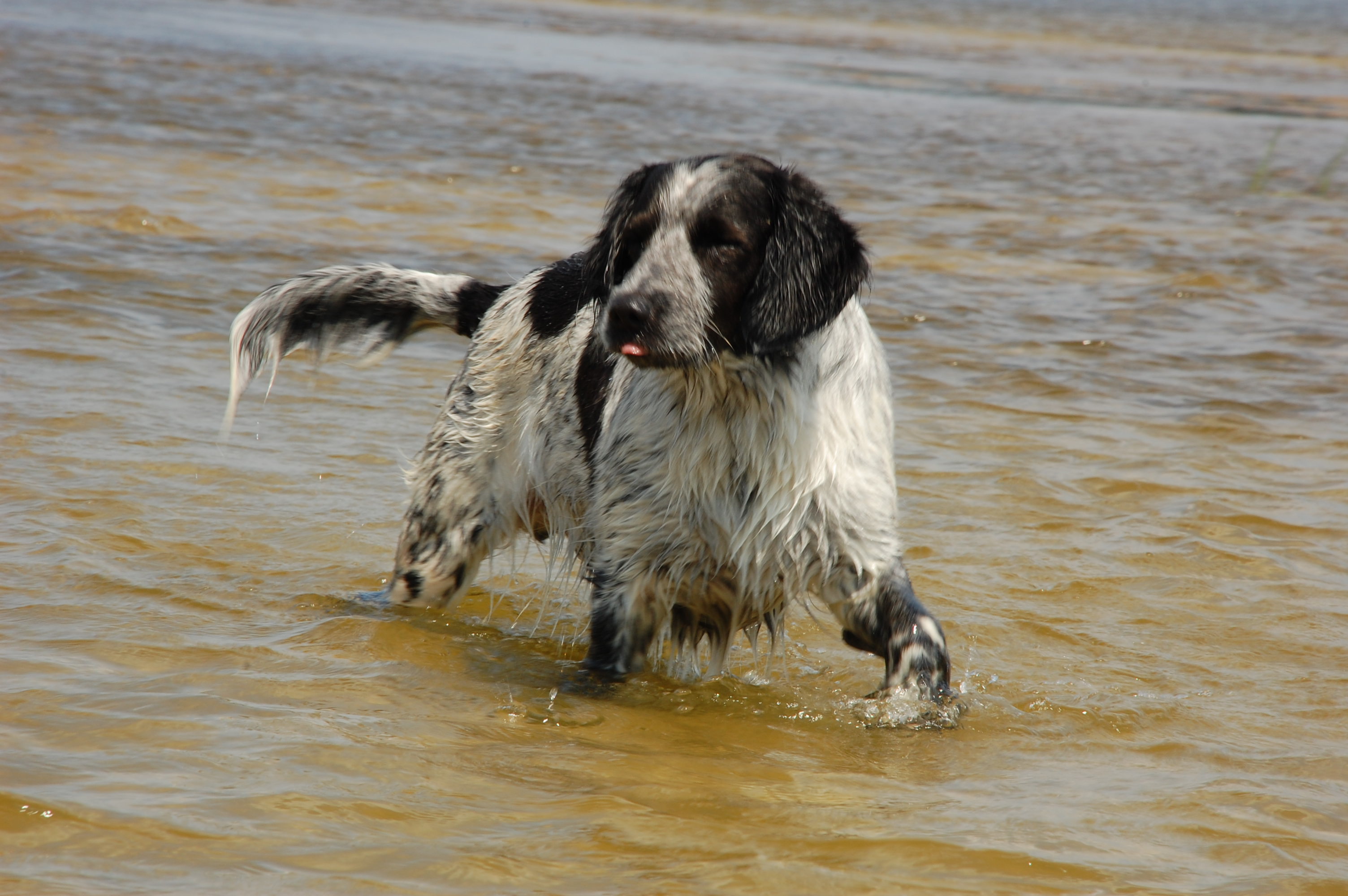 Спаниель играет в воде - 3008x2000