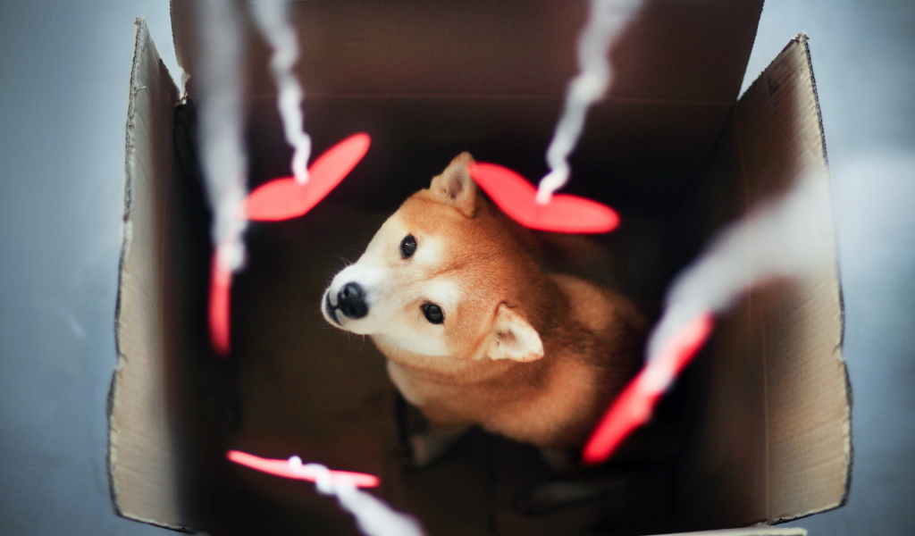 Щенок в картонной коробке Обои для рабочего стола 1024x600
