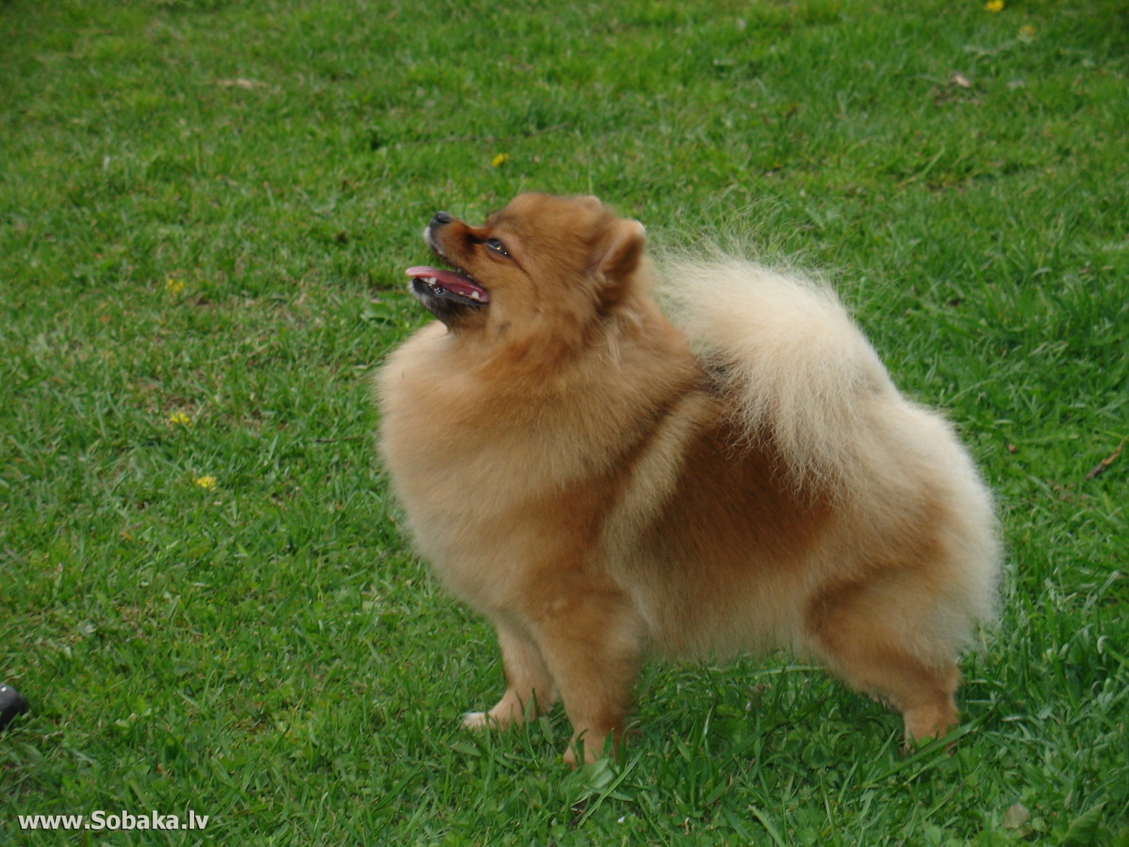 Довольный шпиц на газоне Обои для рабочего стола 1600x1200