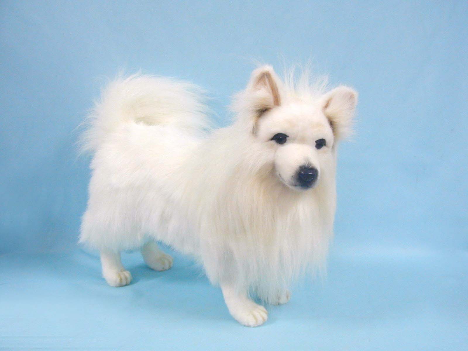 Обои: Белый шпиц на голубом фоне
