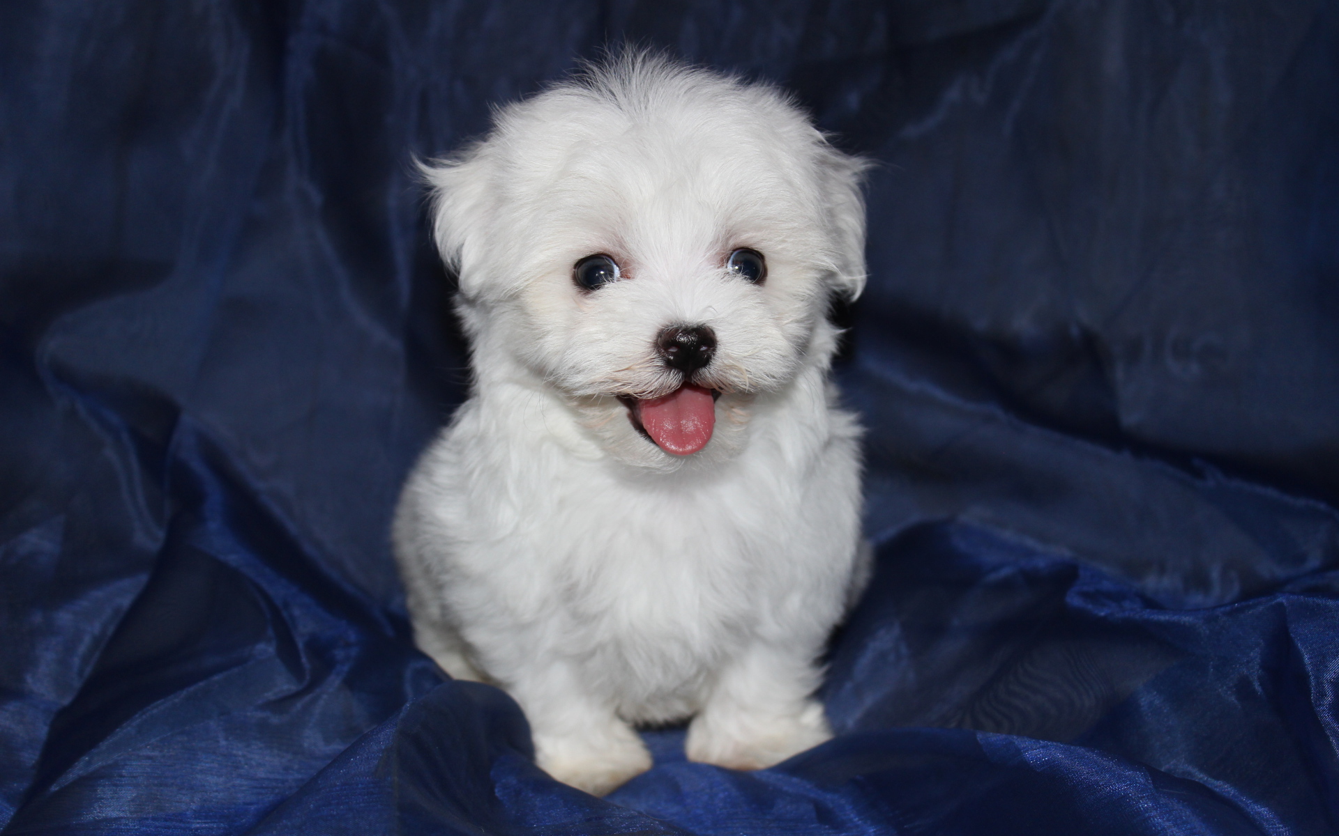 Щенок болонки на синем фоне Обои для рабочего стола 1920x1200