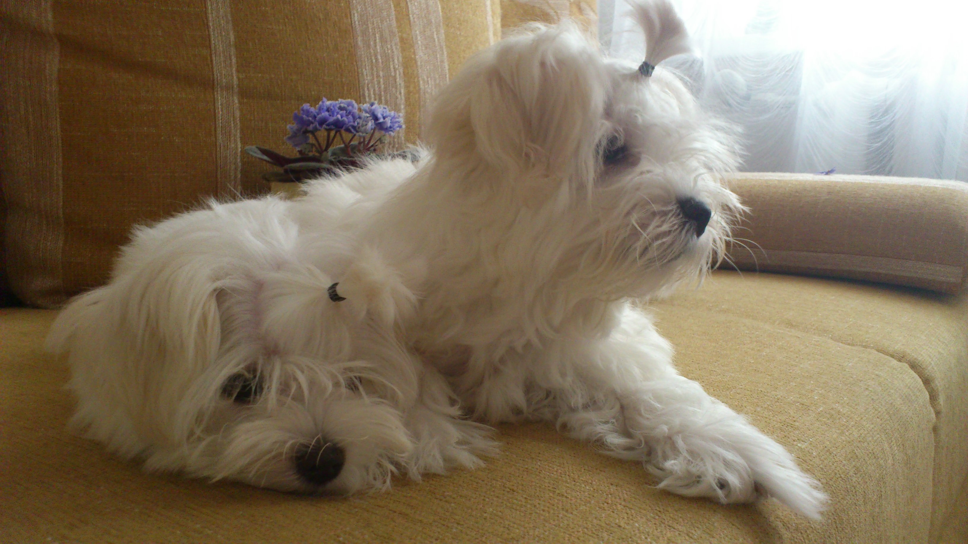 Пара болонок на диване - 3264x1836