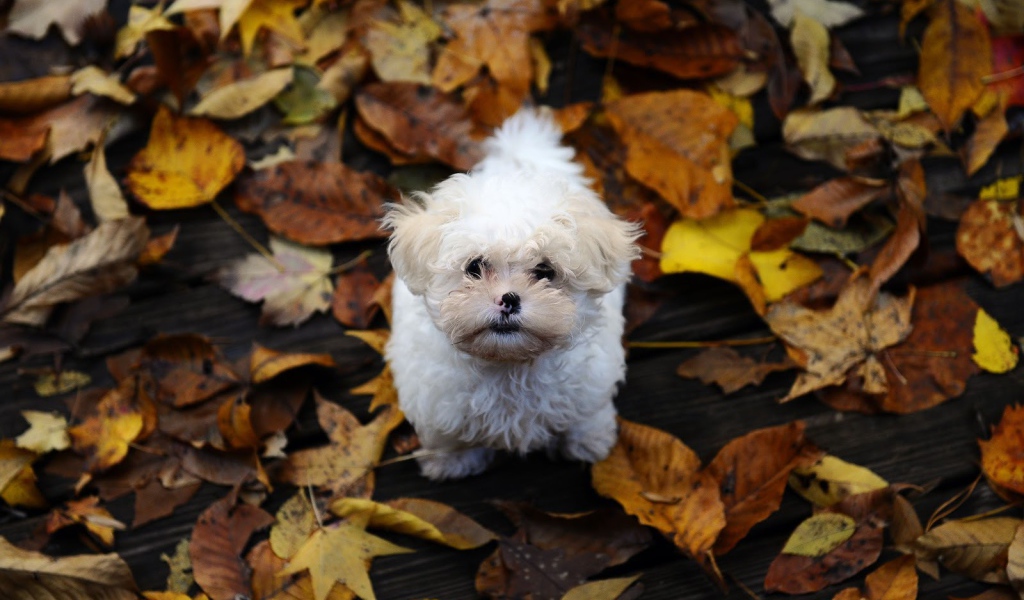 Болонка в осеннем парке Обои для рабочего стола 1024x600