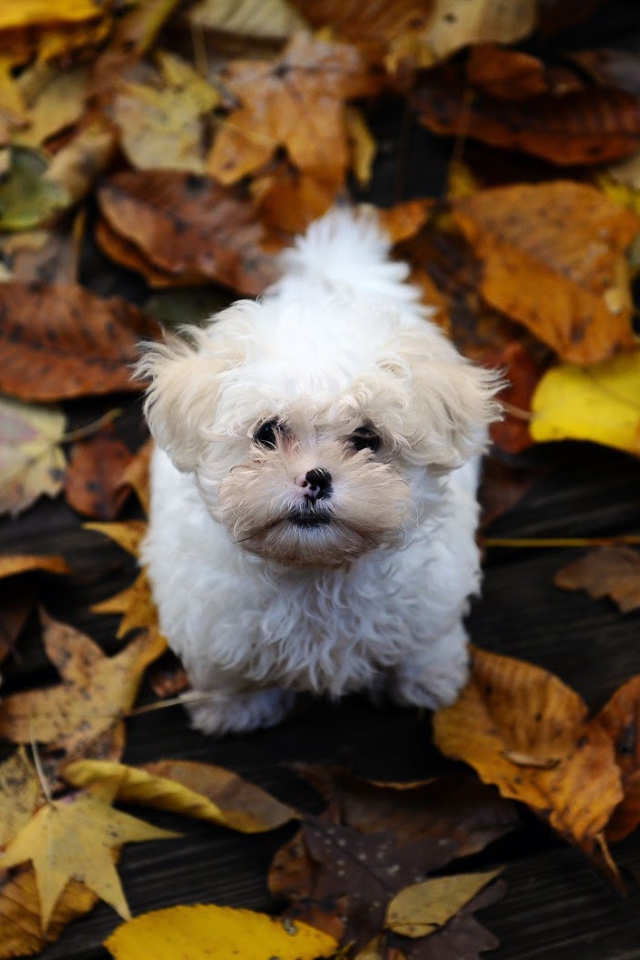 Болонка в осеннем парке Обои для рабочего стола 640x960