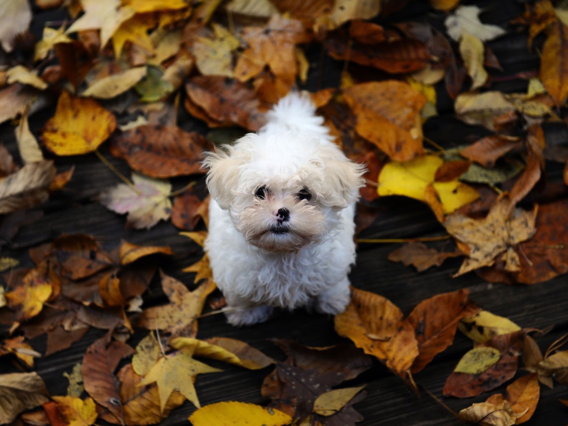 Болонка в осеннем парке Обои для рабочего стола 1152x864