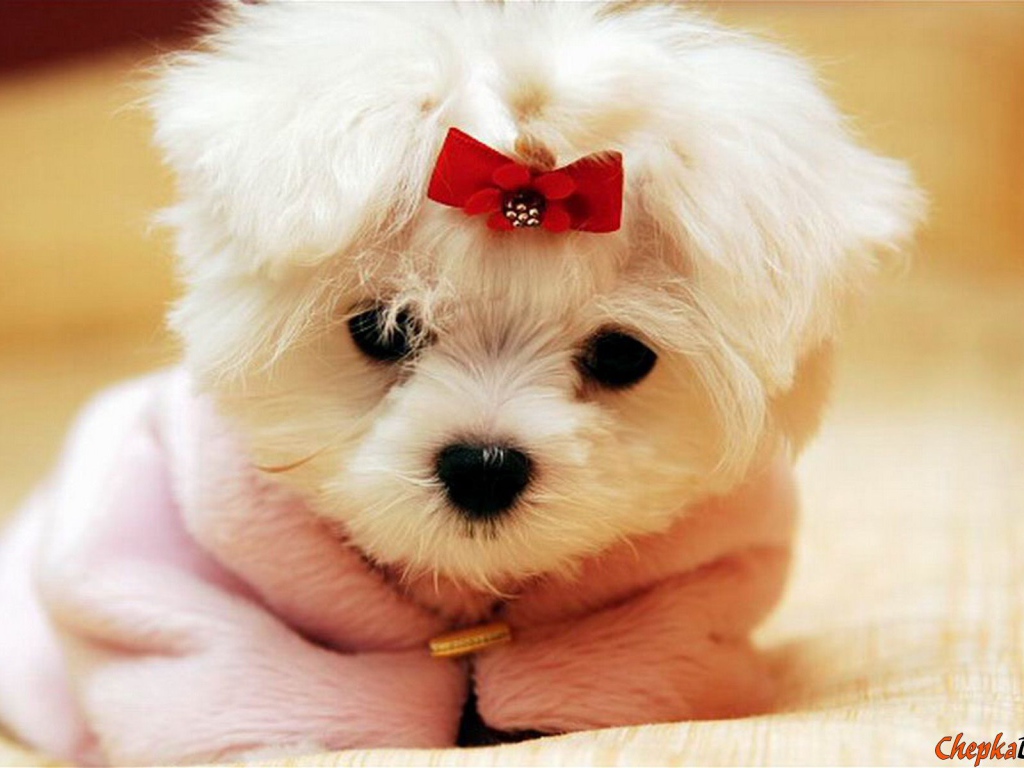 Болонка в розовом свитере Обои для рабочего стола 1024x768