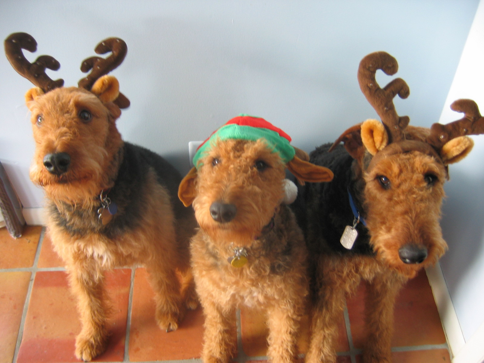 Тройка рождественских эрдельтерьеров - 1600x1200