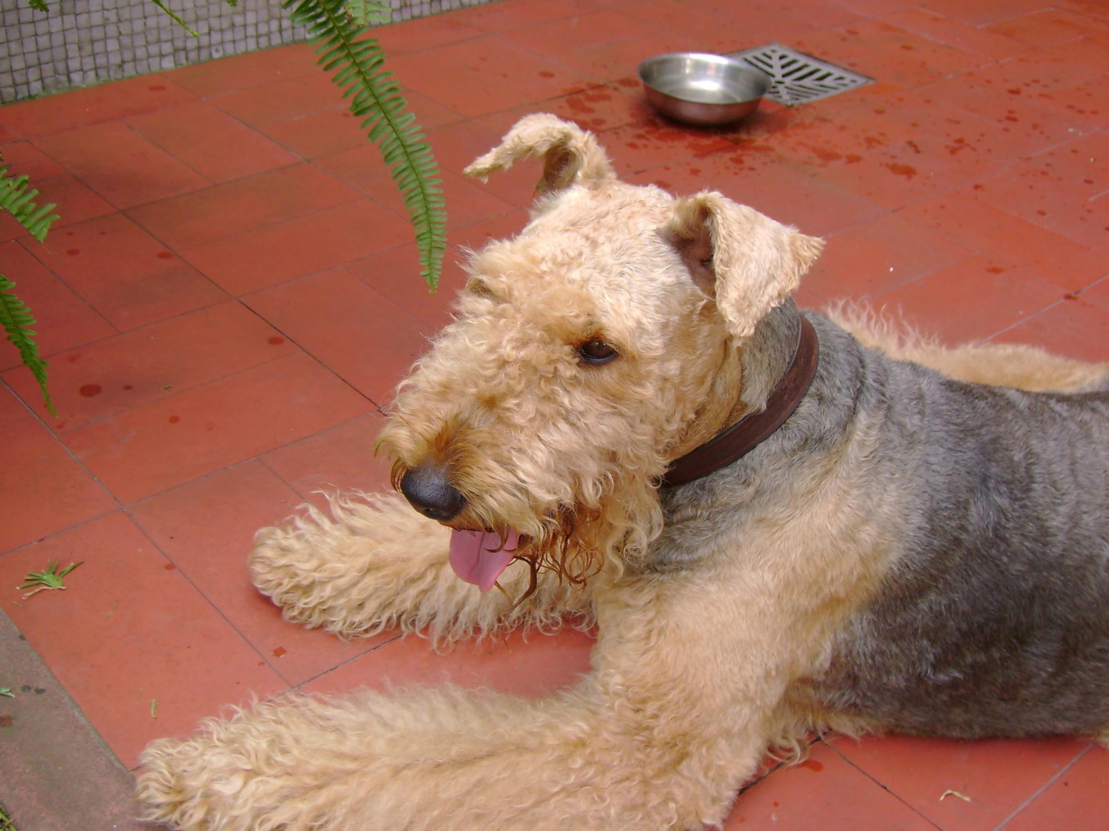 Эрдельтерьер на кафельном полу Обои для рабочего стола 1600x1200