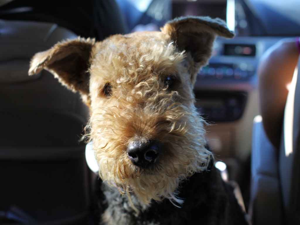 Забавный эрдельтерьер в машине Обои для рабочего стола 1024x768