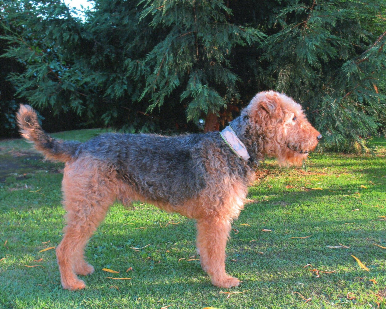 Собака эрдельтерьер у ели Обои для рабочего стола 1280x1024