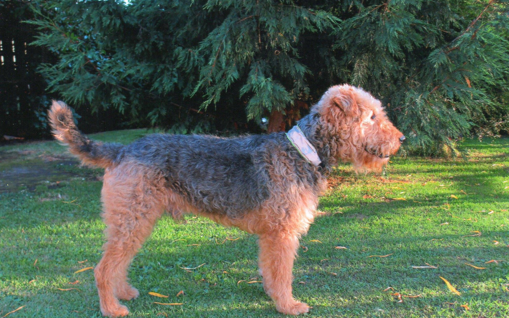 Собака эрдельтерьер у ели Обои для рабочего стола 1680x1050