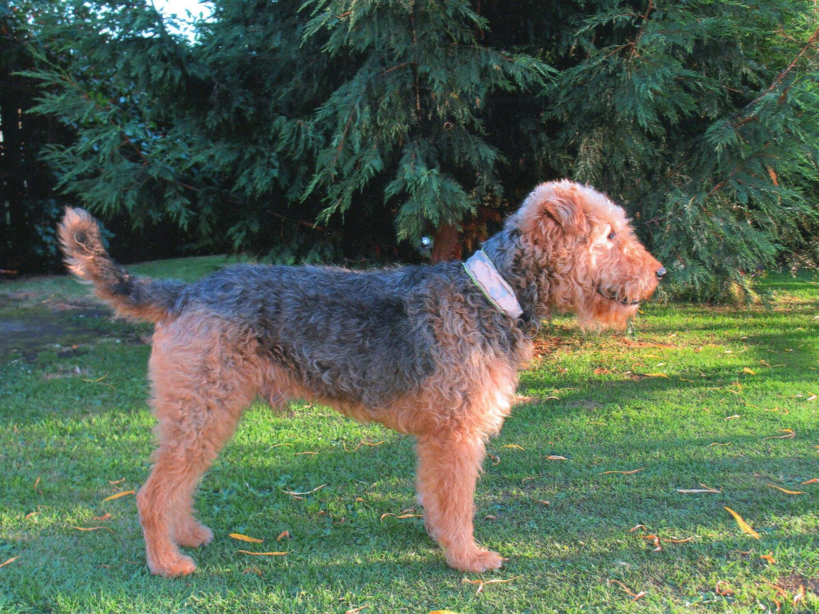 Собака эрдельтерьер у ели Обои для рабочего стола 1600x1200