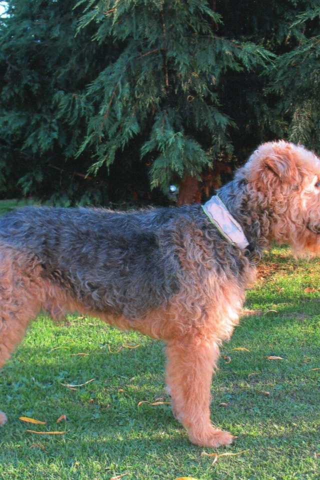 Собака эрдельтерьер у ели Обои для рабочего стола 640x960