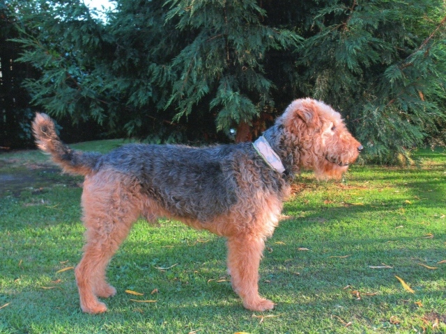 Обои: Собака эрдельтерьер у ели