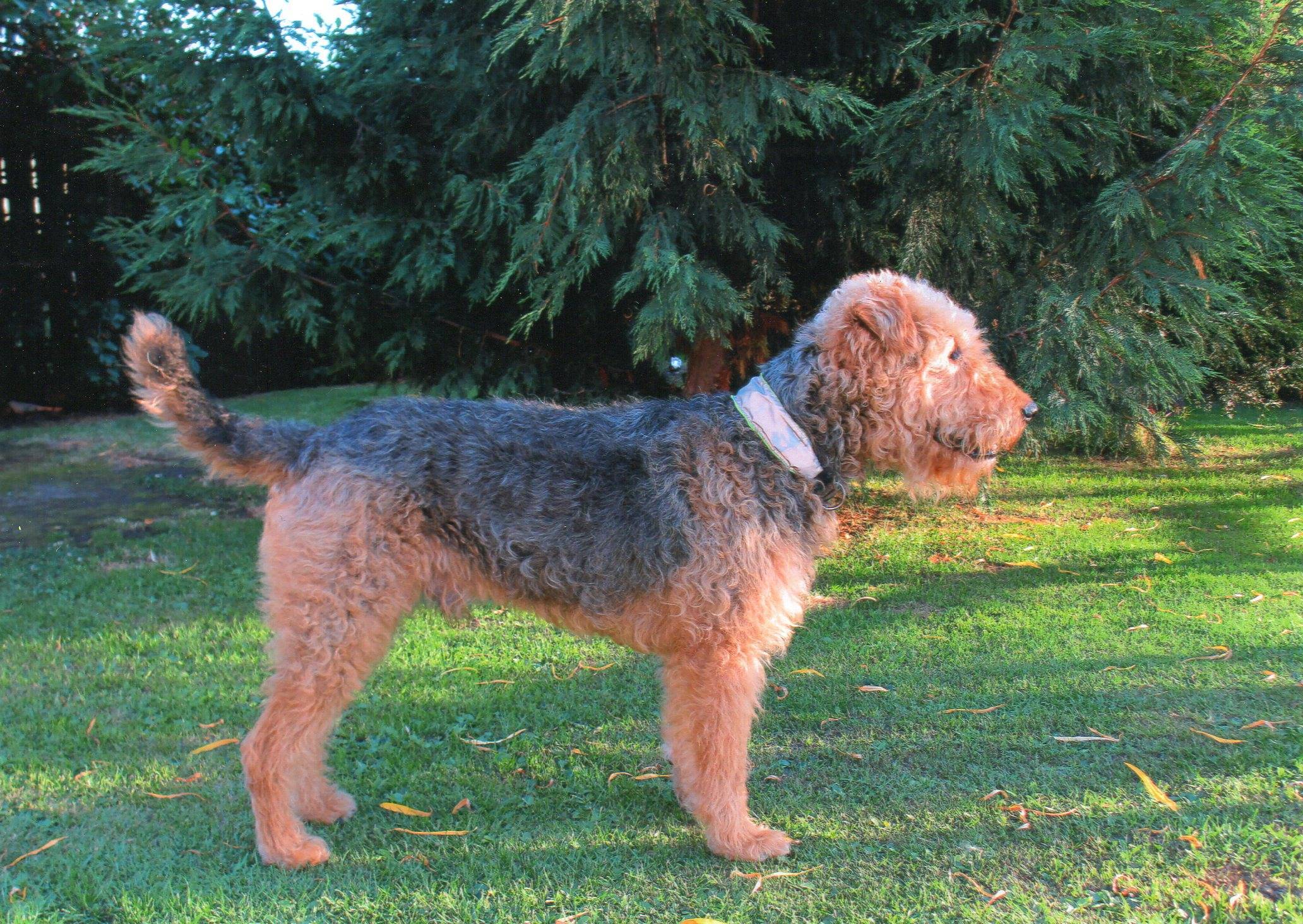 Собака эрдельтерьер у ели - 2064x1464