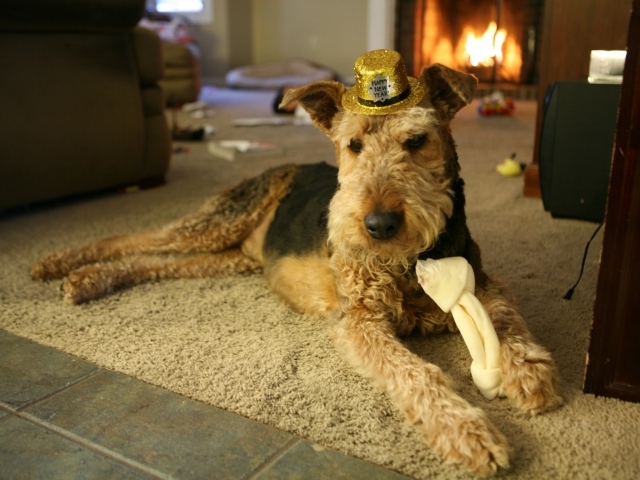 Эрдельтерьер в золотой шляпе - 3168x2112