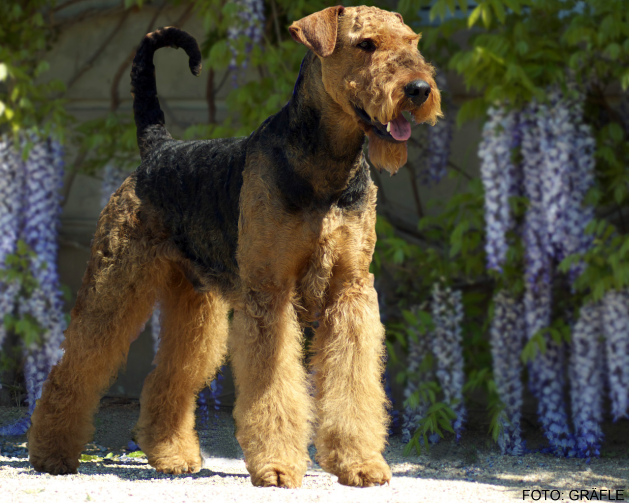 Эрдельтерьер на фоне цветов Обои для рабочего стола 1280x1024