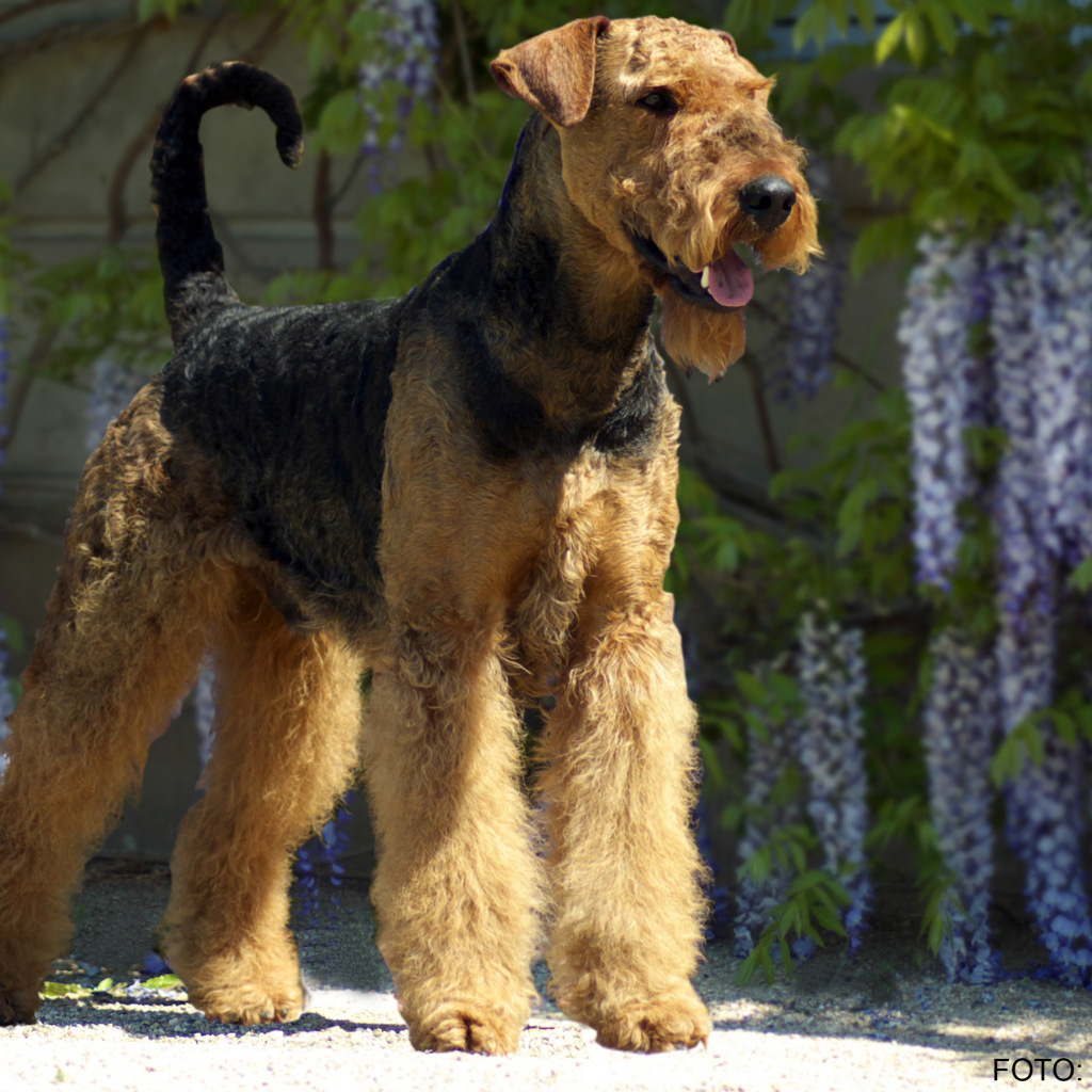 Эрдельтерьер на фоне цветов Обои для рабочего стола 1024x1024