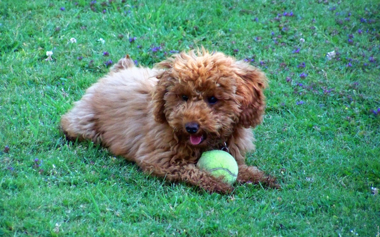 Пудель играет с мячом Обои для рабочего стола 1280x800