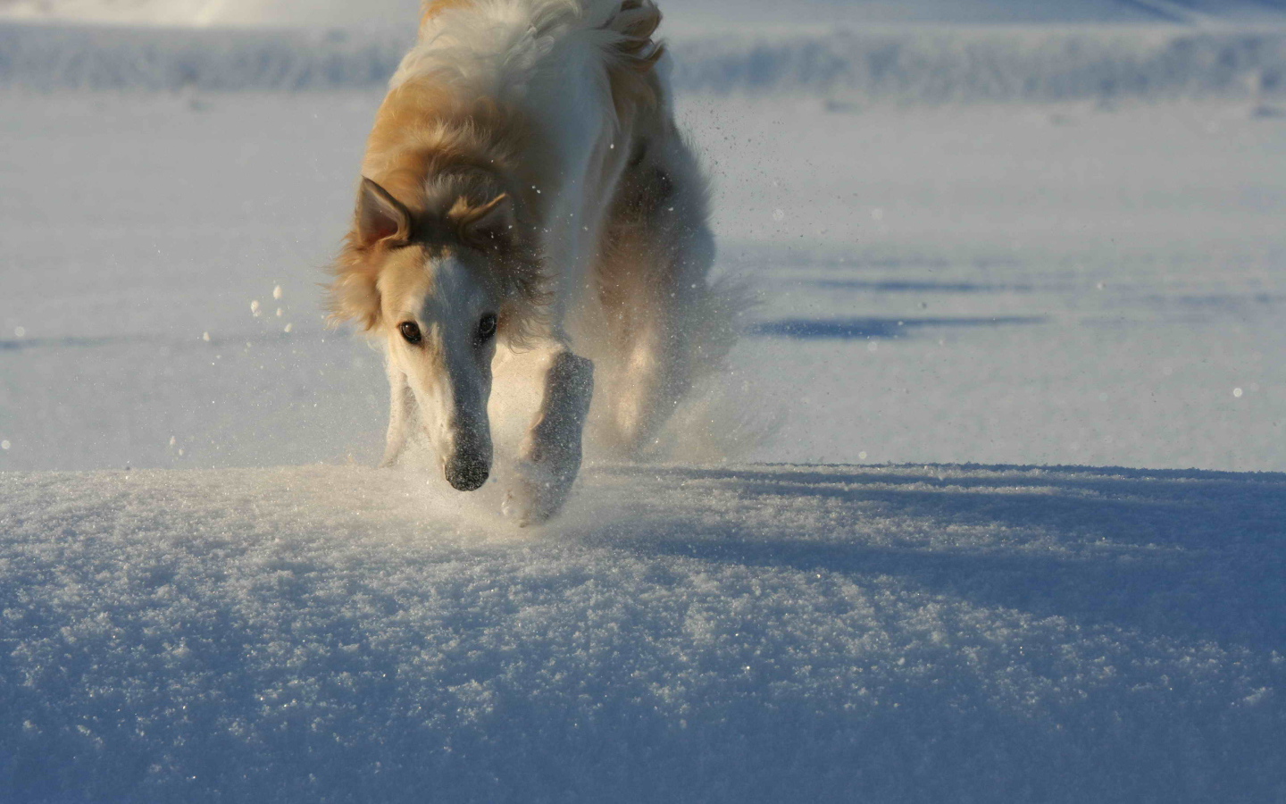 Борзая бежит по снегу Обои для рабочего стола 1440x900